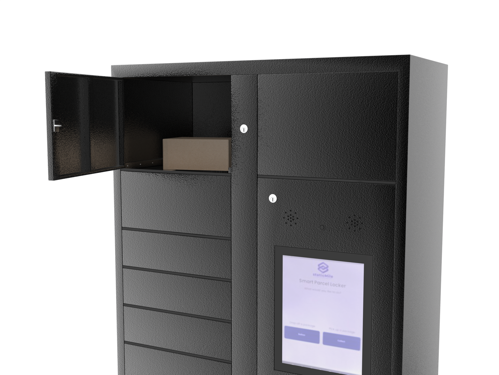Designed for condos, apartments, commercial spaces, retail environments, and other high-traffic locations, staticMile lockers make parcel pickup available 24/7 while reducing front-desk workload and missed deliveries. Each locker is built with security in mind, using controlled access, secure locking, and reliable software to help protect every package.